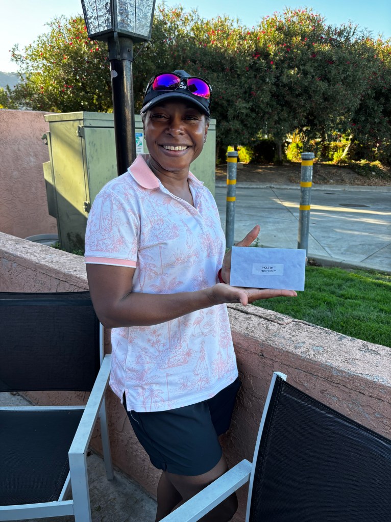 Pink Team: 1st place low net – Pam McCallister; 2nd place low net – Diane Hudson; Closest to the pin – Hole 3 – Kathi Kling